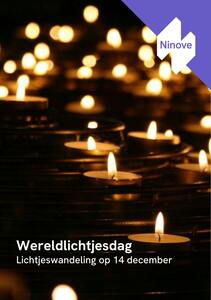 In Ninove organiseren we voor Wereldlichtjesdag een fakkeltocht. De wandeling start om 17u aan het Sociaal Huis en eindigt rond 19u aan het oud stadhuis, waar we je verwelkomen met een warm drankje en een muzikaal intermezzo door Lieselotte Jacobs. Je ontvangt een fakkel bij vertrek aan het Sociaal Huis.